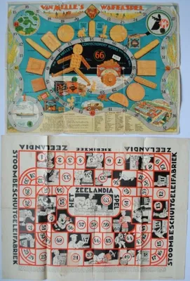 This item contains no English description. See the Dutch description: Kunstdr. Luiie Co, Amsterdam, ca 1925. Ganzenbordachtig spel. 45 x 58 cm. Gevouwen. + Het Zeelandia Spel...