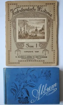 This item contains no English description. See the Dutch description: Touwgebonden oblong album. Compleet met de 12 voor dit album uitgebrachte insteekplaatjes. Album en plaatjes in goede staat.
