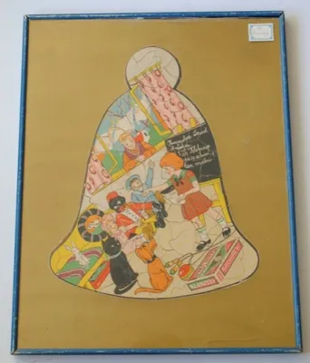 This item contains no English description. See the Dutch description: Ca. 1930. Puzzel in de vorm van een klok. 41 x 33 cm. Compleet, gelegd en achter glas. Op achterzijde van...