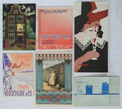 This item contains no English description. See the Dutch description: o.a. uitvouwbare Prijscourant van wijnhandel Ferwerda & Tieman, Amsterdam, met ill. Eppo Doeve, jaren 50 + 5 andere