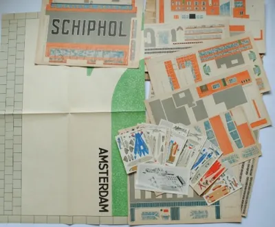 This item contains no English description. See the Dutch description: Zeer zeldzame complete set bouwplaten met 10 grote platen van schiphol, bijgebouwen, en 20 kleinere uitvouwplaten...