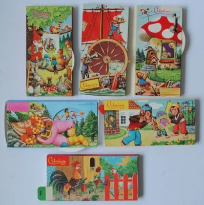 This item contains no English description. See the Dutch description: 6 verschillende dozen in nieuwstaat: Met sprookjesdraaischijf, kippenren, apen met Jan Klaassen, Klein Duimpje,...