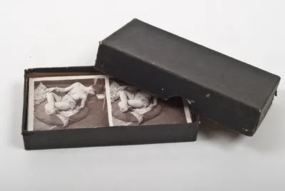 20 erotic stereo photographs, ca. 1920, black-and-white. In small box.