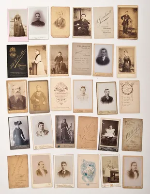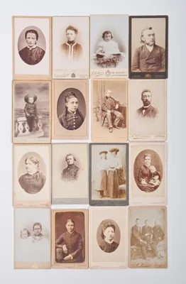Lot of 75 portrait photos, all between 1880-1910, on cardboard. Occasionally, the name of the photographer is printed on the back.