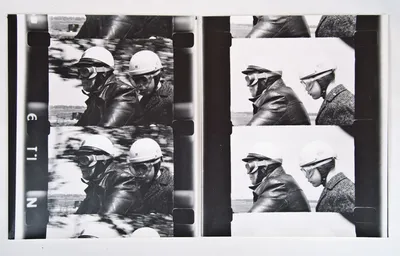 Herman Slobbe/Blind kind 1966. 50 x 60. Silverprint. Series of two on which Slobbe rides on a motorcycle with a blind child. Fotostill from a film. Unusually large print, done...