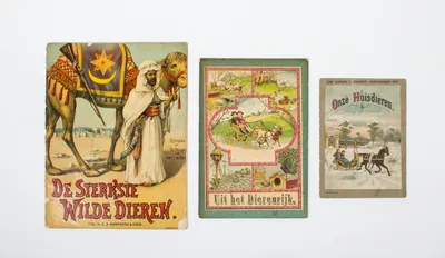 Onze Huisdieren. Oom Bernard's nieuwste Prentenboeken no. 8. W.R. Caspari, Groningen. Small 4to, 12 pp. With vi plates + Uit het Dierenrijk. Ca. 1900. 12 pp. stapled. Small 4to...