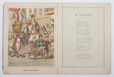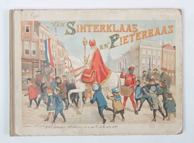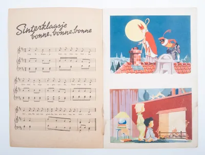 Liedjes. een Ouderwetsche Sinterklaasavond met kleine wijzingen naar het tijdens de oorlog clandestien verschenen origineel. Jos. M.H. Nuss, Laren. 16 pp. Red cloth back. Post-war...
