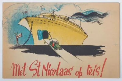 Nimmer meer te laat. Hand-drawn and handwritten story about Loesje who is told by the Sint never to be late again. 1942, 4 pp. + Met St. Nicolaas op reis! A.H.G. Blankenstein,...
