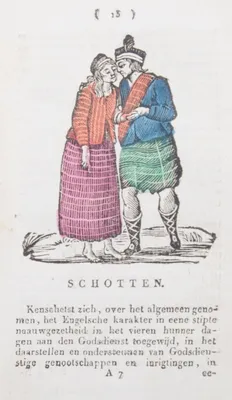 Gorinchem, Jacobus Noorduyn, n.d. (1826), 98,2 p., with 46 hand-coloured wood-engraved folk dress illustrations, original printed cardboard, 12mo.