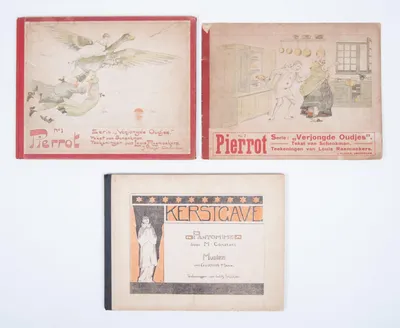 Seriew: "Verjongde Oudjes". Tekst van Schenkman. Teekeningen van Louis Raemaekers. J. Vlieger, Amsterdam, 1890. Oblong, 10 pp. Trifle dam. along edges + Pierrot no. 1. Series:...