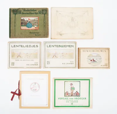 Liedjes uit Artis. Teekeningen en versjes van Rie Cramer. Van Goor Zonen's Uitgeversmaatschappij, Den Haag + Ik en Artis (idem) + Vroolijke Rijmpjes, Vroolijke Wijsjes, Fleurige...