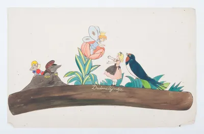 Illustrations for children's books and/or games from the '30s-'40s. Illustrator unknown. Mixed technique. Incl. designs for a Snow White (?) coat rack. 37 large leaves, 41 x 64 cm.
