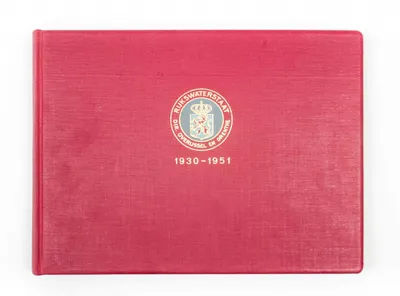 "Revue van nul tot vijfenzestig". Album presented to Mr. Langemeyer at his farewell as Chief Engineer-General at Rijkswaterstaat. Oblong cloth with gilt binding stamp. Typed and...