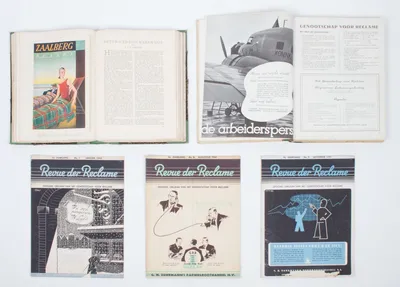 Genootschap voor reclame, Jaargang 1931. Bound volume of this magazine. Lacks 8 advertising brochures from this year. In green half cloth + sev. nos. of Revue der Reclame and a bundling.