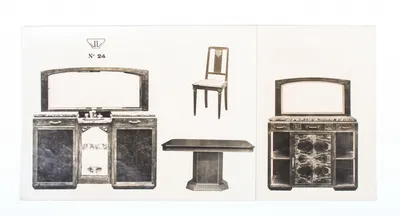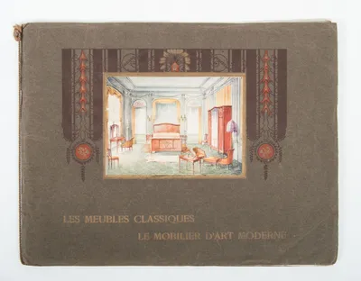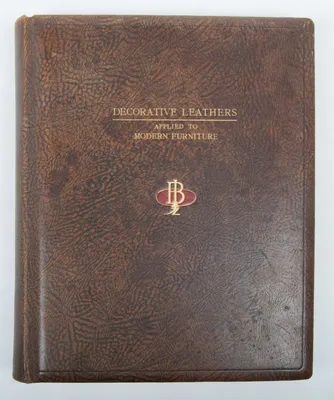 Folio (37 x 30 cm.), leather, with gilt title. Work by J. Brandt & Zoon, Boekbinderij Amsterdam, ca. 1910. With 33 photos of furniture leather crafting such as clocks and smoking stands.