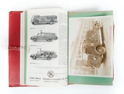 Carl Metz Feuerwehrgerätefabrik, Karlsruhe, ca. 1952. Mixed catalogue with brochures, parts lists and several photos of fire engines.