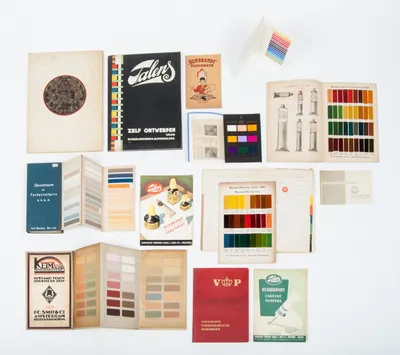 Talens. Rembrandt watervaste tekeninkt. Brochure with inlays, 1953 + Talens Zelf ontwerpen voor Schabloneeren, Batikken, enz. Teekeningen door G.J. van Lerven, tekst C. Bakhuizen...