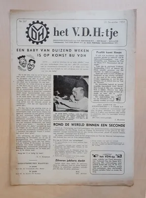 Nearly complete first volumes (starting 1947) of the "V.D.H.tje", weekly news magazine for the personnel of Van der Heem N.V. Den Haag + dozens of documents, lists, brochures and photos.