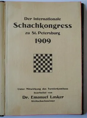 Der Internationale Schachkongress zu St. Petersburg unter Mitwirkung des Turnierkomitees bearb.v. Dr. Emanuel Lasker. Verlag Dr. E. Lasker. Berlin. 1909. 8vo, in half leather....