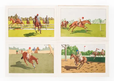 Galerie Lutetia, Paris, ca. 1910. 4 pochoirs. All 37.5 x 55.5 cm. related to equestrian sports.