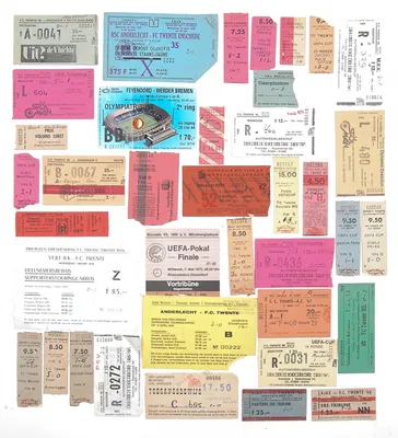 Lot with 33 FC Twente admission tickets, including Europa Cup matches in the '70s, matches against Ajax, PSV etc. + Twente Uit, extra edition of the "Twente Thuis" programme, distributed...