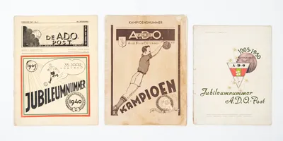 Jubileumnummer A.D.O. post, 1905-1940. 20 pp. + Kampioensnummer 1941 (front slightly damaged), 32 pp. - and Jubileumnummer A.D.O.-post 1905-1950. 40 pp.
