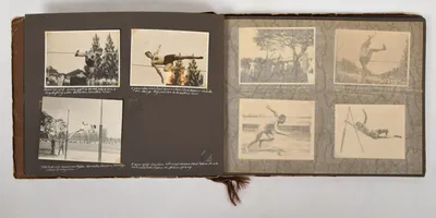Photo album with 68 photos of athletes during athletic competitions. Incl. Kampioenschapswedstrijden 1927 & '28, Batavia kampioenschaps-wedstrijden, Olympiaplein Amsterdam, 1929, shot put etc.