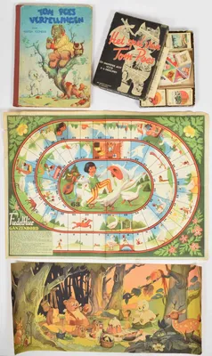 Het spel van Tom Poes. Marten Toonder, c. 1942. Publ. Gustav Czopp, Amsterdam. 'n Variété product, copyright Diana Edition. Booklet with rules, hexagonal starting point, name cards:...