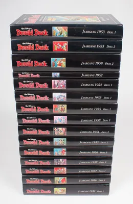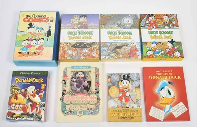 No. 1-75, Oberon/Samona, 1977-2006. Most in very good condition + Het levensverhaal van Dagobert Duck. Complete set in 2 vols., hc in cassette. Samona, 2013 + De Reisavonturen...