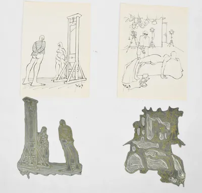 Two clichés with print of Yrrah cartoons - and two other prints on recto. From: Yrrah Cartoons. Querido, 1971.