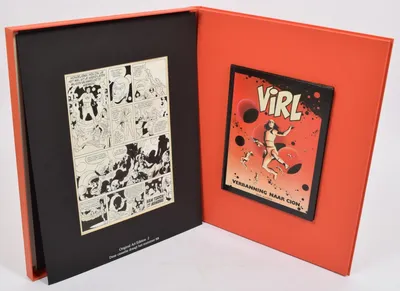 Folio deluxe edition in halfcloth, 1998. 57 x 27 cm. Contains: hc album with three stories and various large-size drawings, accompanying stapled booklet + original page 20 of De...