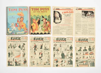 Marten Toonder, Marks & Spencer, 1948. Outside rubbed and slightly soiled + Tom Puss at the Panto. Birn Brothers, London, 1950. Front and back cover rubbed and stained, first page...