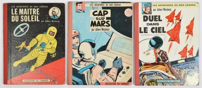 Les aventures de Dan Cooper. Le Maitre du soleil, Albert Weinberg, 1958 + Cap sur Mars, 1960. Cover slightly discoloured + Duel dans le Ciel, 1962. All three without Kuifjes punt...