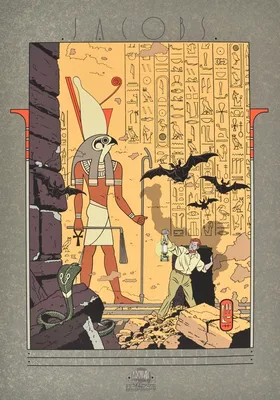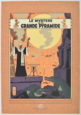 Le Mystere de la Grande Pyramide. Fragment "Mais brusquement..." Ten-colour screen print Archives Internationales, 1987. 70 x 100 cm. + Hergé. Tintin "Les Cigares de Pharaon."...
