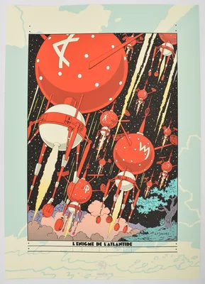 L'Enigme de l'Atlantide. Ten-colour screen print Archives Internationales, 1990. 100 x 70 cm. Beautiful copy.