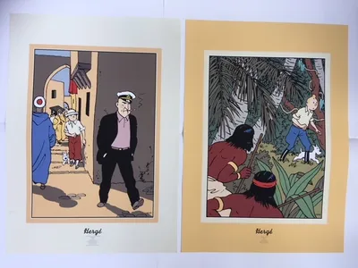 "Les Cigares de Pharaon." Fragment. Ten-colour screen print, Archives Internationales, 1990. 80 x 60 cm. Like new + "L'Oreille Cassée". Fragment. Ten-colour screen print, Archives...