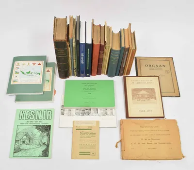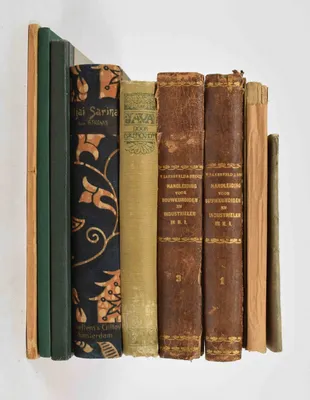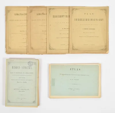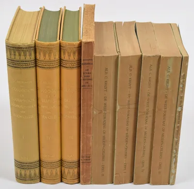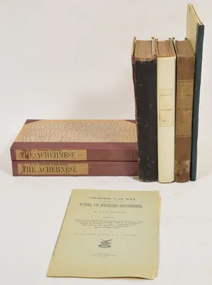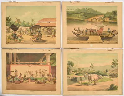 Schoolplaten van Ned. Oost Indië. E. Nijland. Utrecht, C.H.E. Breijer, 1897. 9 plates from a series of 12. Nos. 1, 2, 3, 4, 5, 6, 8, 11 and 12. Een Javaansch erf I + II, Een rijstveld,...