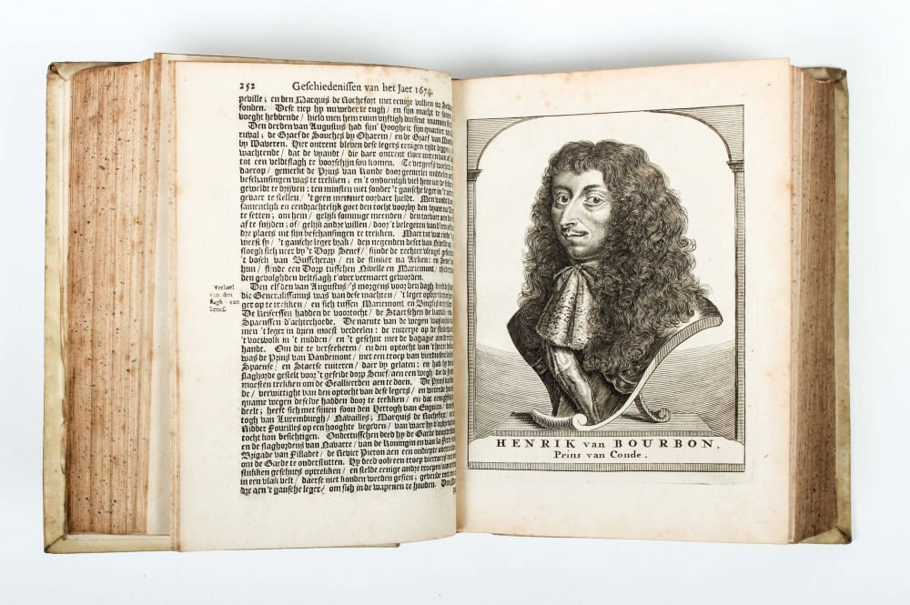 met byvoeging van authentijke stukken, onpartijdiglijk beschreven door V.T.V. [= Geraert Brandt de Jonge]: Konnende dienen tot een vervolg van 't Ontroerde Nederlandt, van de jaeren 1672 en 1673. Amsterdam, J. van Someren etc., 1678, (4),816,(16) p., with engraved frontispiece and 8 engraved portraits, contemporary vellum, 4to (here and there foxing, rear pastedown loose from board, else very good).