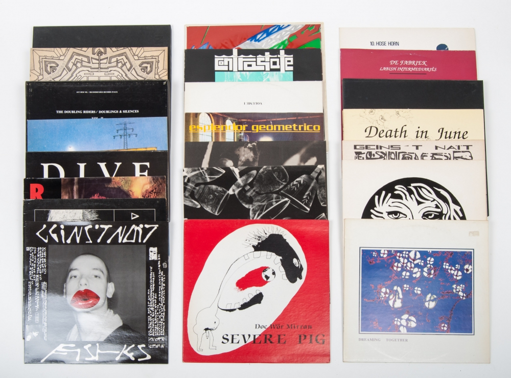 Lot with 22 LP records with avant garde electronic music from the '80s, incl. DsorDNE é un sole, Intensive Care Unit, Cranioclast, bog Art, Death in June and Geins't Nait. All in good condition.