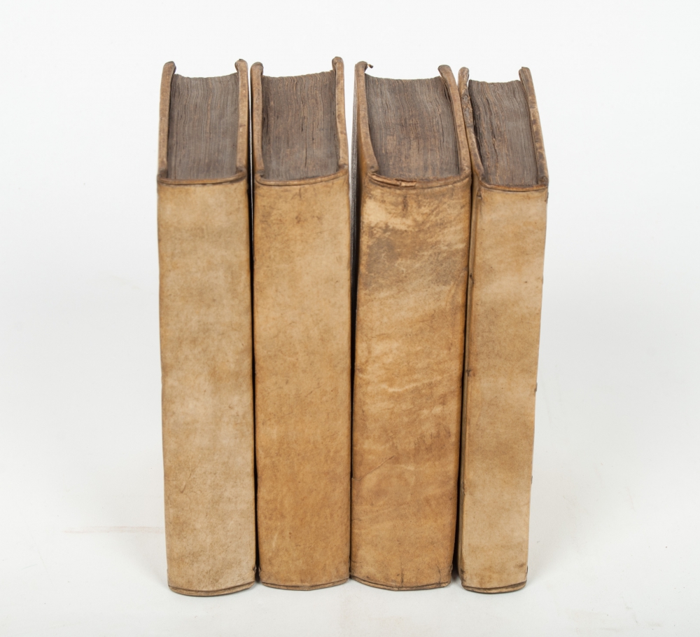 Nouvelle Edition revuë, corrigée & augmentée . Enrichie de figures gravées par Bernard Picart le Romain. The Hague, I. Vaillant, P. Gosse and P. de Hondt, 1722, 4 volumes, with engraved frontispiece, 1 folding, engraved escutcheon and 6 engraved plates and many vignettes, contemporary uniform vellum.