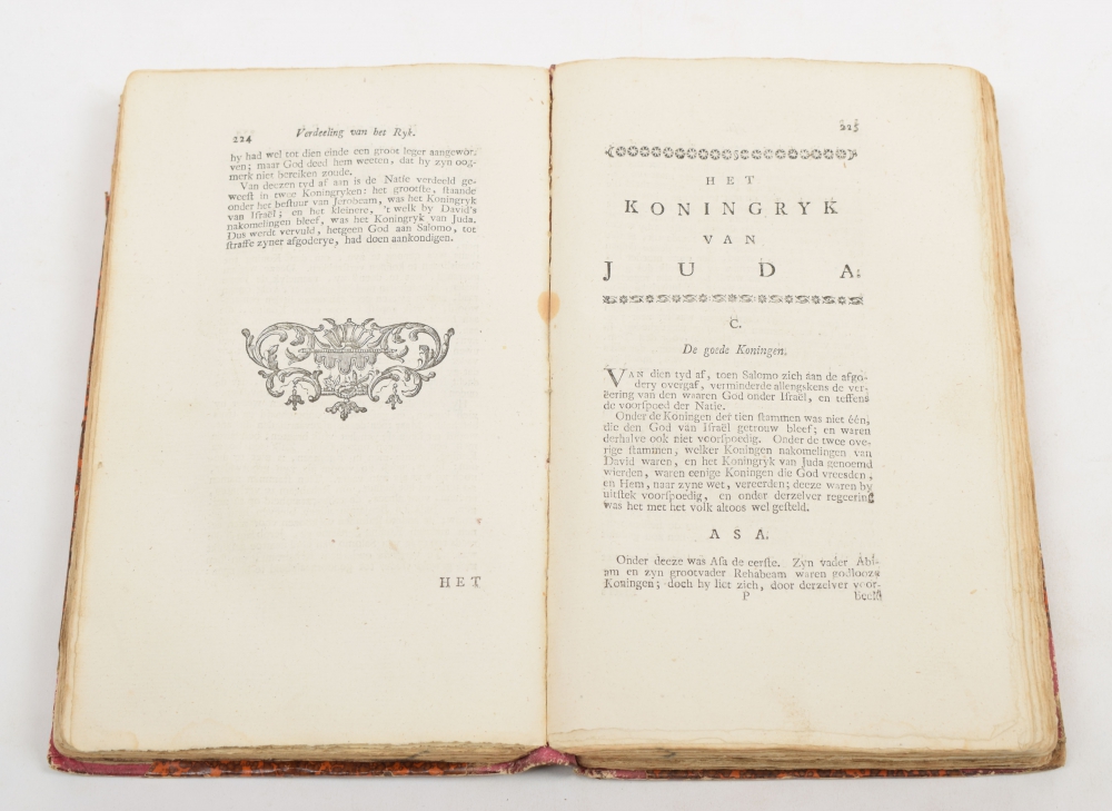 Joh. Jac. Hesz, Geschied-verhaalen des Ouden en Nieuwen Testaments, inzonderheid geschikt voor de jeugd, vertaald door Joh. Will. van Haar. The Hague, I. van Cleef, 1778, half morocco, large 8vo, xvi,610 pp. - good (shaky, spine slightly damaged).