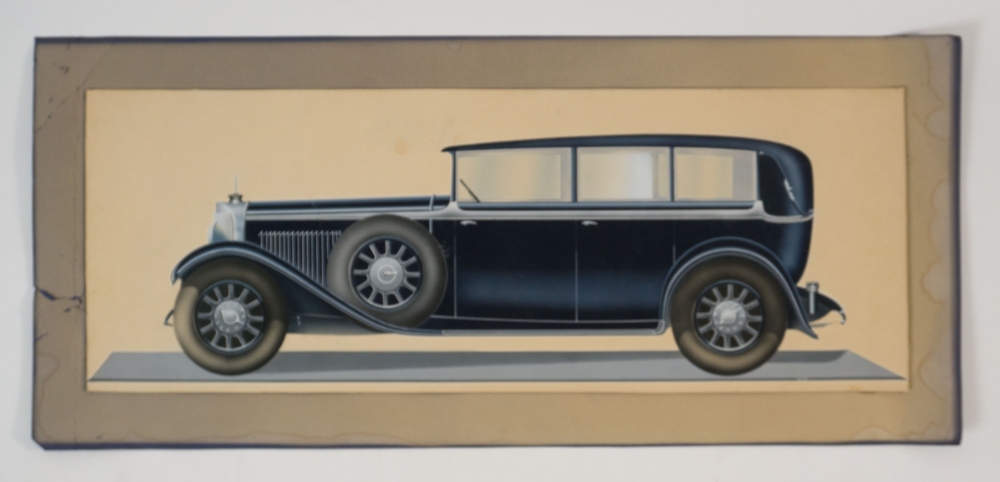 Early airbrush drawing probably of a Horch, ca. 1924. 22.5 x 62 cm.