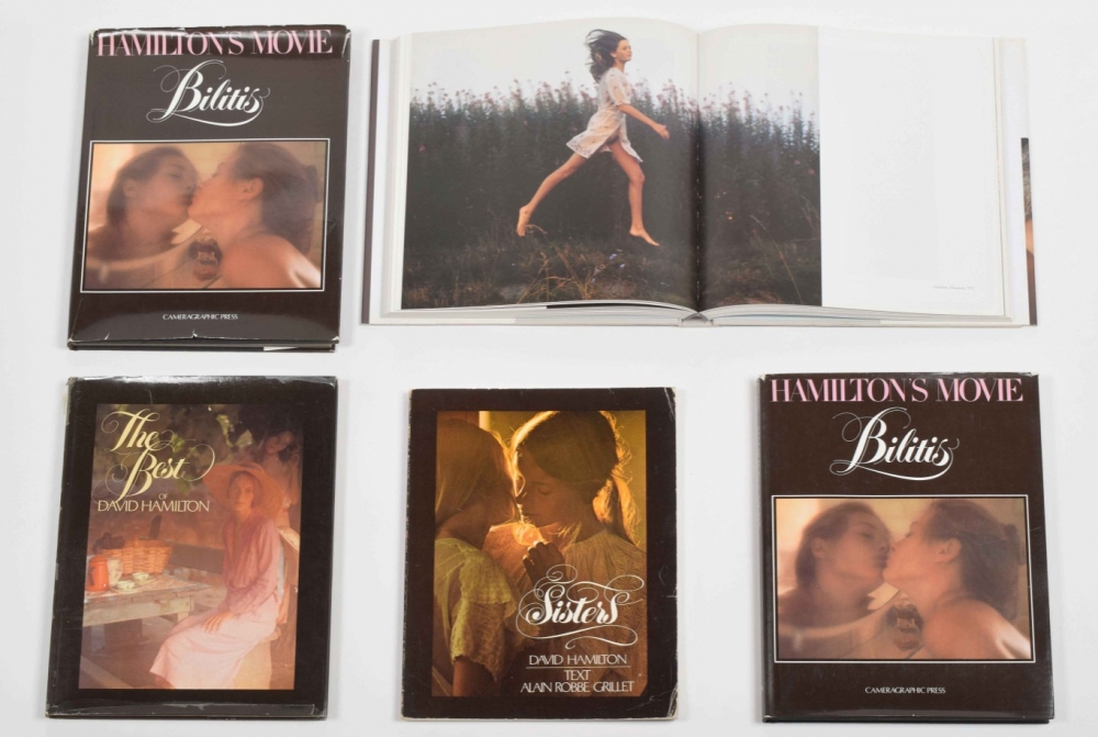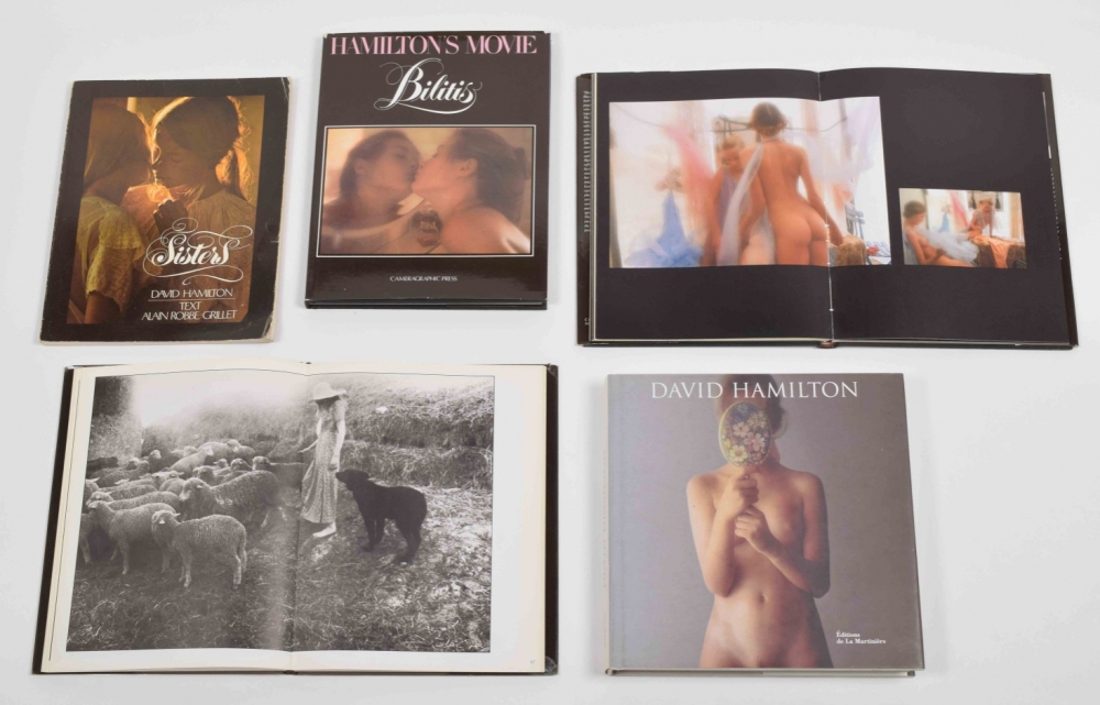 Paris, Editions de La Martinière, 2006. 322 pp. Bound w. dust wr. Signed by Hamilton in ink on title page + 4 other photobooks by David Hamilton, 1973-1977.