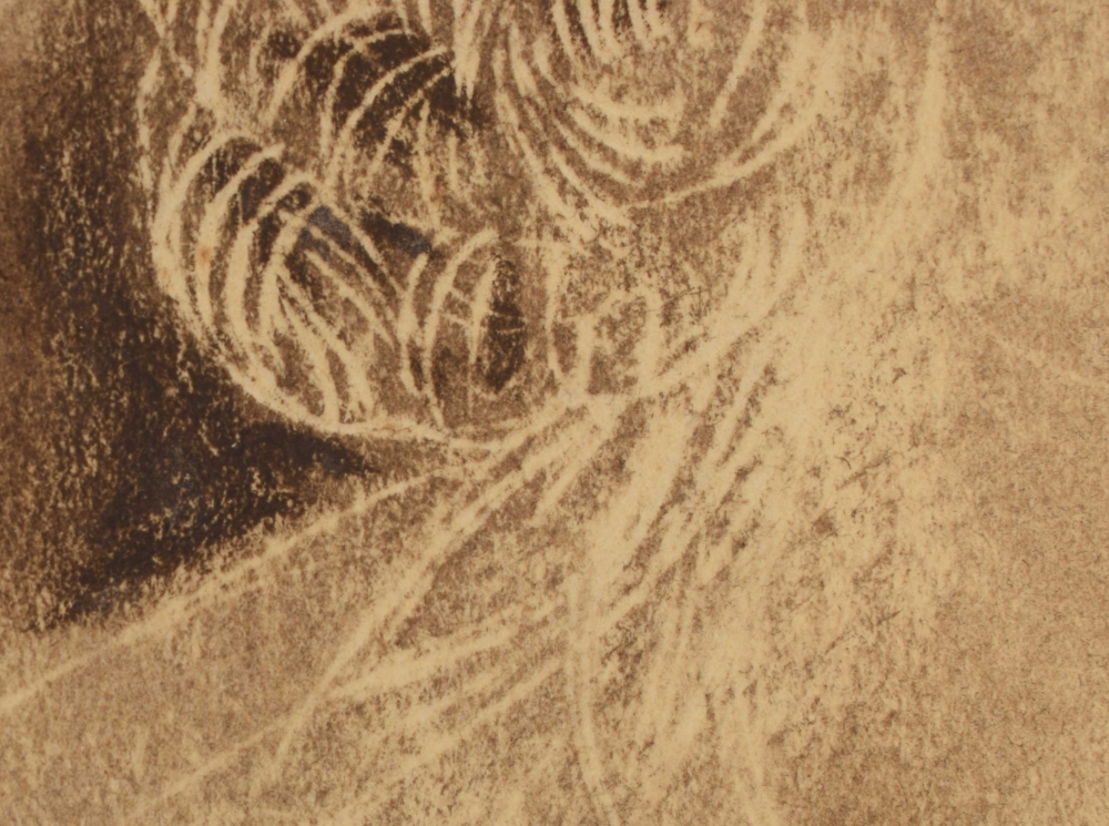 Drawing in unknown grisaille technique, with envelope lines printed deep into the paper, 30.5 x 24 cm., signed in red ink, in mount.