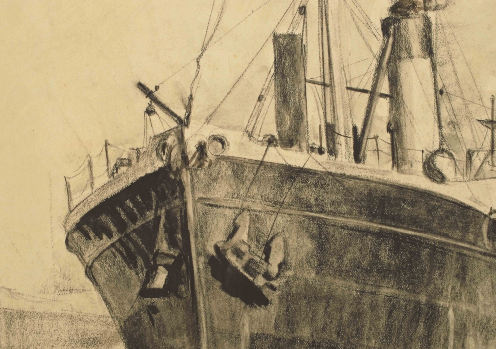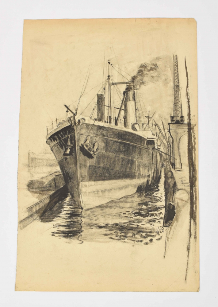 Three drawings: (1) Kuno Brinks (1908-1992). (Steamship in harbour)