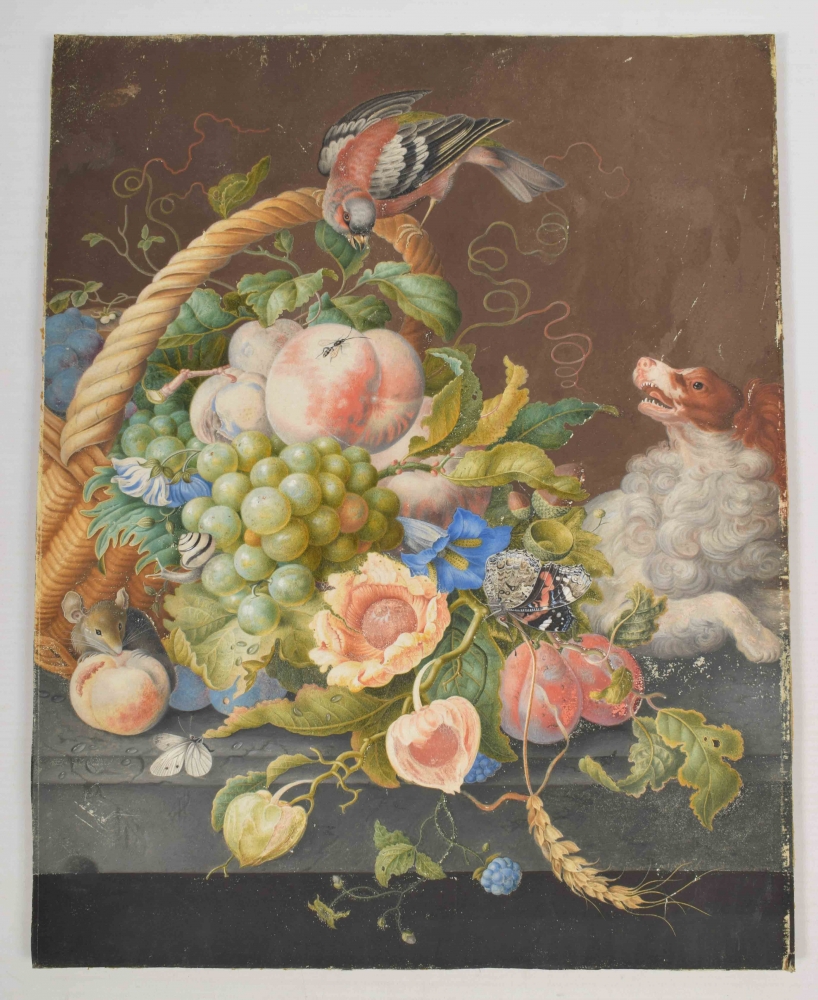 Herman Henstenburgh (1667-1726) (attrib.). (Fruit still life with dog and other animals)