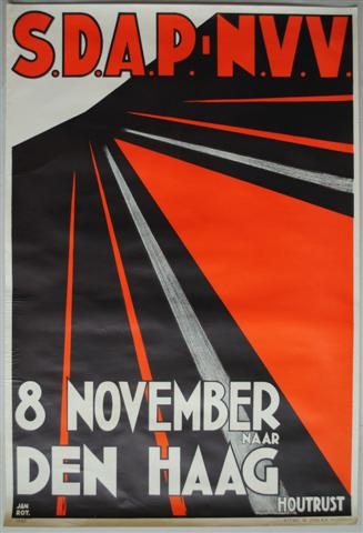 This item contains no English description. See the Dutch description: Jan Rot. S.D.A.P. N.V.V 8 November naar Den Haag Houtrust.1932. 80 x 54 cm.