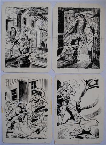 This item contains no English description. See the Dutch description: 1940-1955. 4 Schetsen, 4 originelen (inkt, 26 x 18 cm) en 1 bromure.