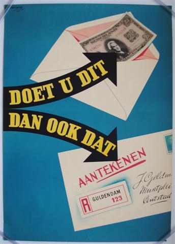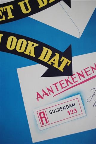 See the Dutch description: P.T.T. Affiche over het aantekenen van brieven. Ontwerp Koen van Os.