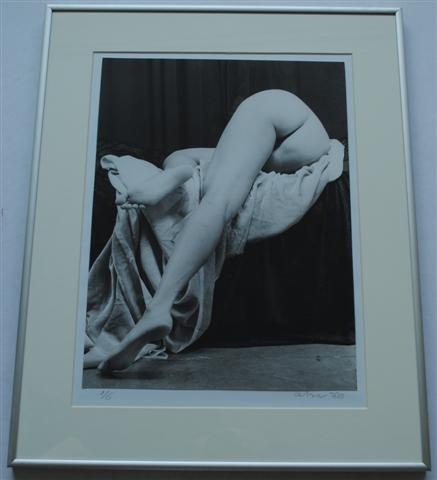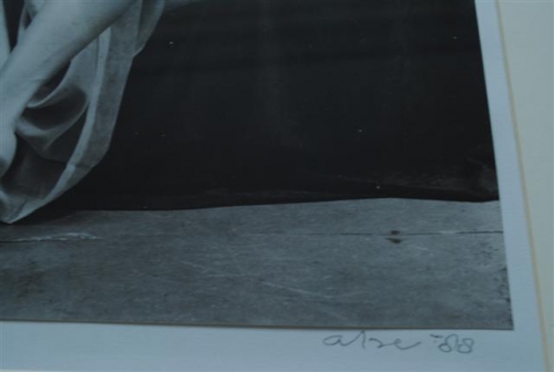 This item contains no English description. See the Dutch description: Naakte vrouw op bed. Originele zwart-wit foto. r.o. gesigneerd "atze '88" en l.o. genummerd 1/6. 27,5 x 36 cm. Ingelijst achter glas.